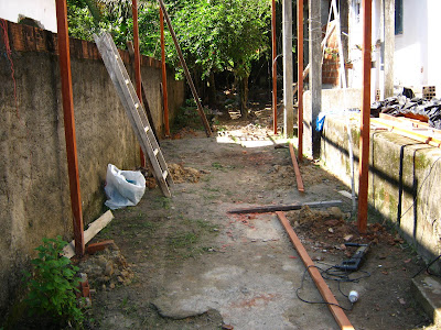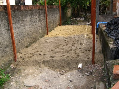 | detalhe das colunas cravadas a 50cm de profundidade no solo. |
