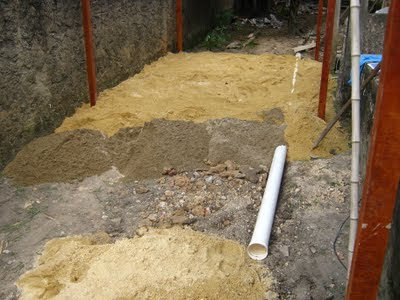 desinfestação: é importante quando se esta na etapa de fazer o chão e final fazer uma desinfestação do local, podendo se usar a água sanitária pulverizando em todas as etapas de montagem do chão para garantir um ambiente mais livre de doenças para as orquídeas.