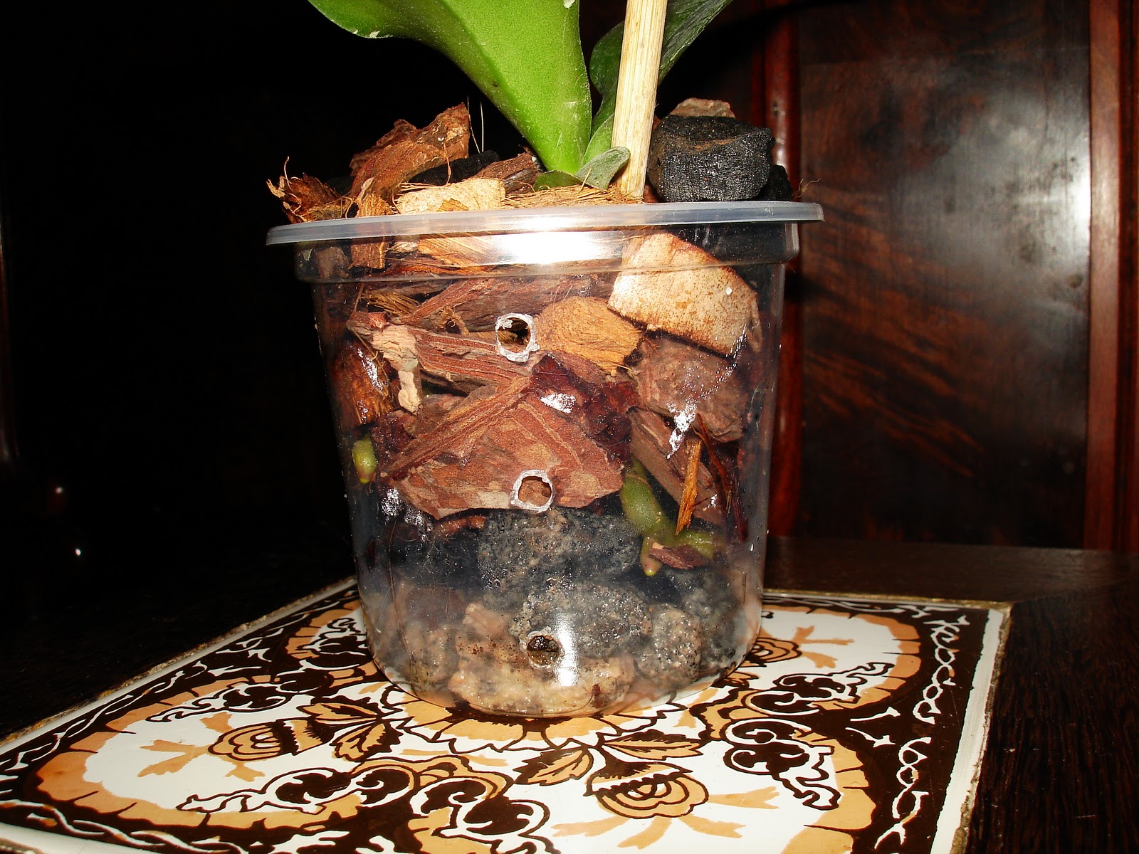 Tenho uma cattleya que está plantada em um vaso de fibra de coco sem furos nas laterais e dentro do vaso tem somente pedaços de madeira meio podre está correto? E ela não tem dado sinal de vida o que eu faço ? Me ajude . Obrigada