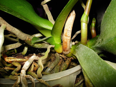 ExcluirVerifique também se o substrato(terra) em que ela está não está muito velho prejudicando as raízes e se Não é composto de musgo(sfagnum) ou fibra de coco e caso sim é recomendado fazer o replante, limpando todas as raízes removendo todas as mortas e colocando um substrato novo bem drenado e ventilado próprio para orquídeas. Não serve terra nem substratos comprados em floriculturas ou lojas de Jardinagem, apenas em Orquidários comerciais.